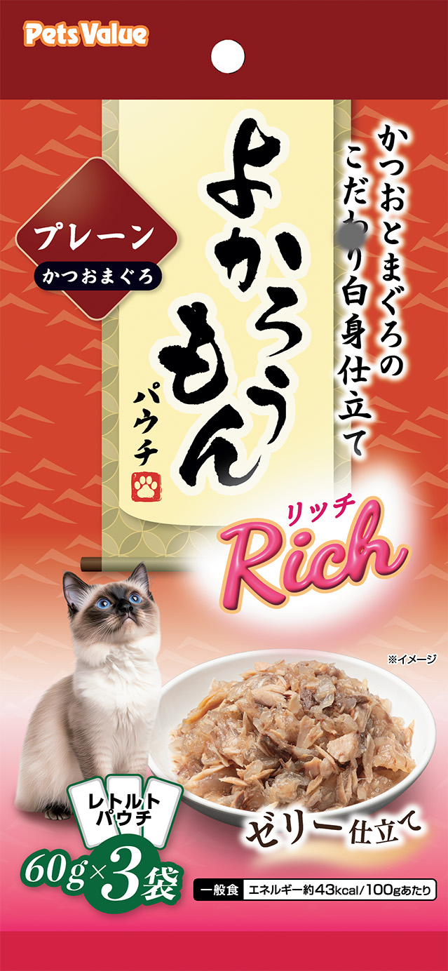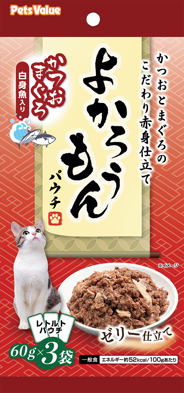 よかろうもんプレミアムは まぐろ・かつおの白身だけを使用した白身100%の贅沢な美味しさ 水分が不足しやすい猫ちゃんの為に“とろみ仕立て”に仕上げました!