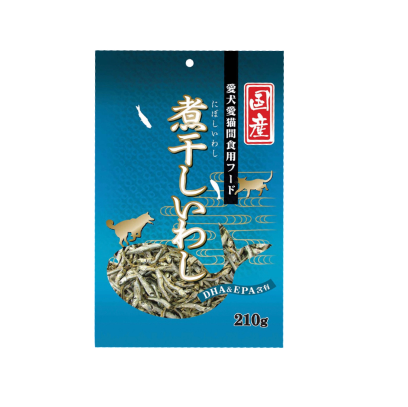 国産 海産物シリーズ 煮干しいわし パクパクお魚 商品名:煮干しいわし 原材料:かたくちわし、食塩 原産国:日本 サイズ:幅190㎜×奥行35㎜×高さ300㎜ 内容量:210g 価格:オープン価格 成分表: 粗タンパク質 63.0%以上 粗脂肪 5.0%以上 粗繊維 0.3%以下 粗灰分 15.0%以下 水分 15.0%以下 カルシウム 2,200mg(100gあたり) エネルギー:約330kcal(100gあたり) 賞味期限:10ヶ月 JAN:44522171403634 商品名:パクパクお魚 原材料:かたくちいわし、食塩 原産国:日本 サイズ:幅140㎜×奥行20㎜×高さ210㎜ 内容量:45g 価格:オープン価格 成分表: 粗タンパク質 63.0%以上 粗脂肪 5.0%以上 粗繊維 0.3%以下 粗灰分 15.0%以下 水分 15.0%以下 カルシウム 2,200mg(100gあたり) エネルギー:約330kcal(100gあたり) 賞味期限:10ヶ月 JAN:4522171403689 DHA・EPA含有で 健康維持のサポートに! PDFカタログはこちら